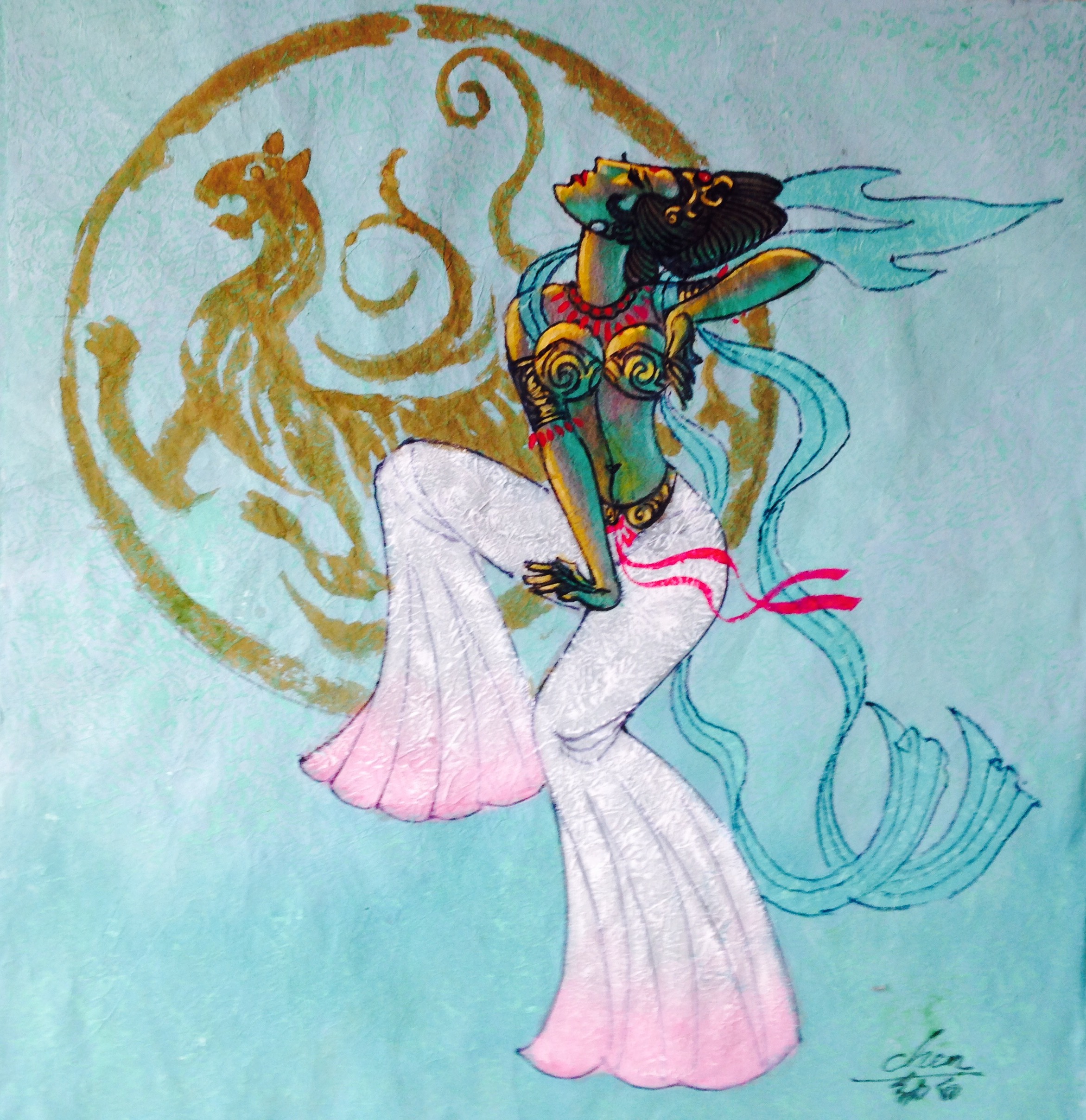 A famous painter with Dunhuang art. Honorary Chairman of China Dunhuang Art Association and senior researcher of World Art Center. Golden Award Winner of World peace Award Art competition (2002) and receiver of the Lifetime Achievement Award by World Art Center (2017).
